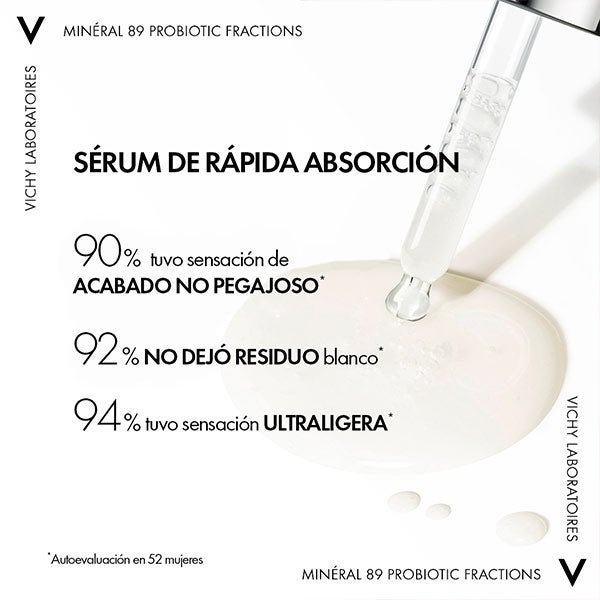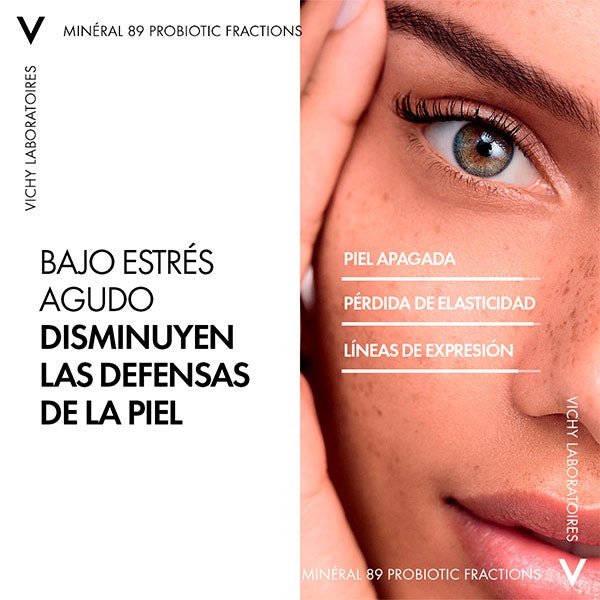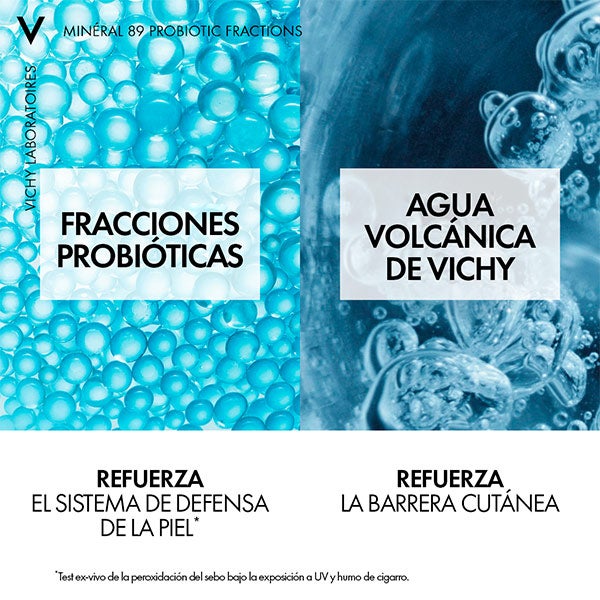 Elaborado con fracciones probióticas obtenidas en Agua Volcánica de Vichy y enriquecidas con vitaminas antioxidantes como la niacinamida, ayuda a recuperar los signos de una piel saludable (luminosidad, firmeza, reducción de líneas de expresión).
