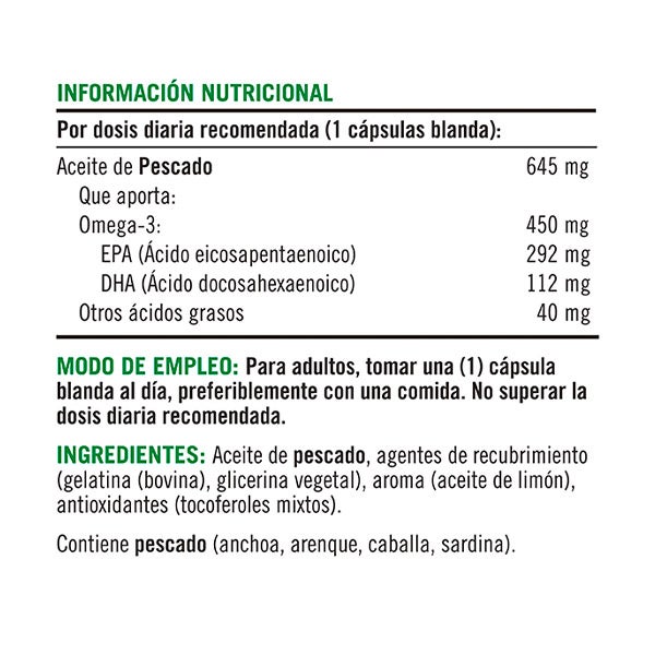 Contiene pescado (anchoa, arenque, caballa, sardina).