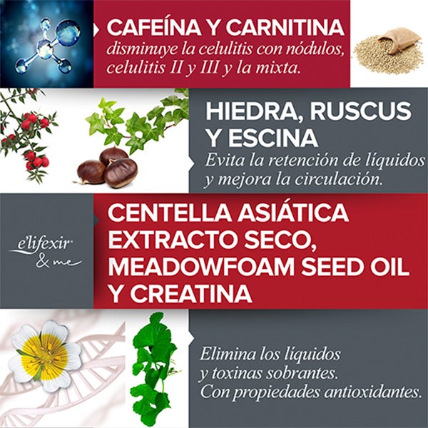 Elifexir Minucell Intensive actúa con una triple eficacia: reductora, drenante y reafirmante.