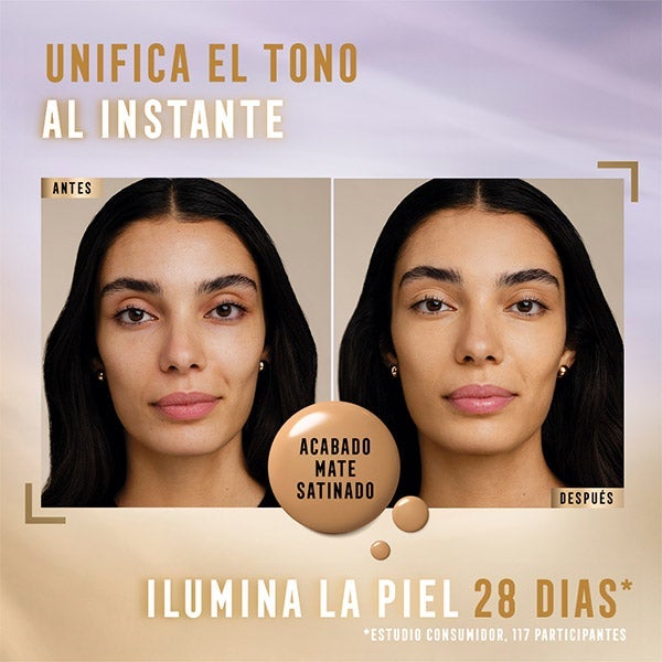 Antes de aplicar la base, limpia tu rostro e hidrátalo cuidadosamente. Agita el envase para que los componentes se mezclen de manera uniforme y aseguren un acabado óptimo.