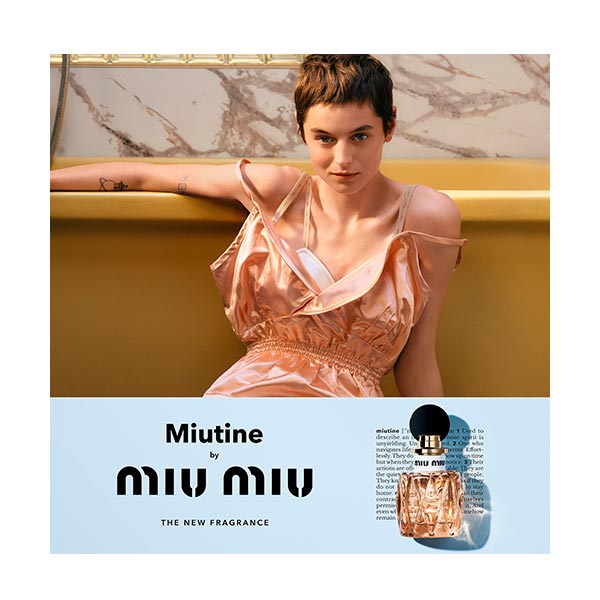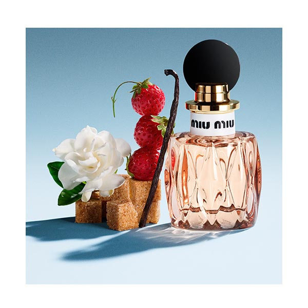 Una fragancia femenina llena de energía que equilibra la ternura con la elegancia, desplegando acordes cálidos y jugosos que estimulan los sentidos y evocan la independencia, el descaro y el encanto espontáneo de la mujer Miu Miu.