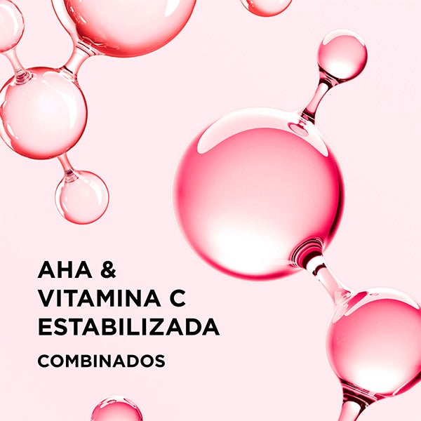 Sérum bifásico con efecto unificador que mejora la textura cutánea y realza su luz natural gracias a la combinación de vitamina C estabilizada, ácido glicólico (AHA) y extracto biológico de semilla de acerola. Con el uso continuo, la piel se percibe más luminosa, uniforme y con una hidratación que se mantiene hasta 24 horas.