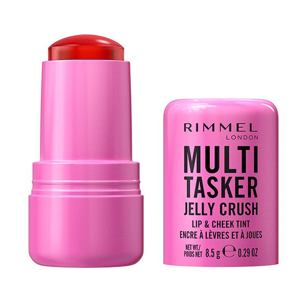 ¡El flechazo perfecto que te hará ruborizar! • Atrévete a darle vida a tu rostro con el nuevo Rimmel Jelly Crush. • Este tinte con textura tipo "Jelly" hidrata intensamente labios y mejillas, aportando color y frescura. • Su fórmula ligera, enriquecida con Niacinamida, mantiene la piel suave sin sensación pegajosa. • Olvídate de los retoques, luciendo un acabado fresco y uniforme durante todo el día. • Siente la textura gelatinosa y su aroma frutal que llenan cada uso de una dulzura veraniega irresistible. • Y si deseas cambiar, basta con retirarlo fácilmente con agua micelar – ¡así de sencillo!
