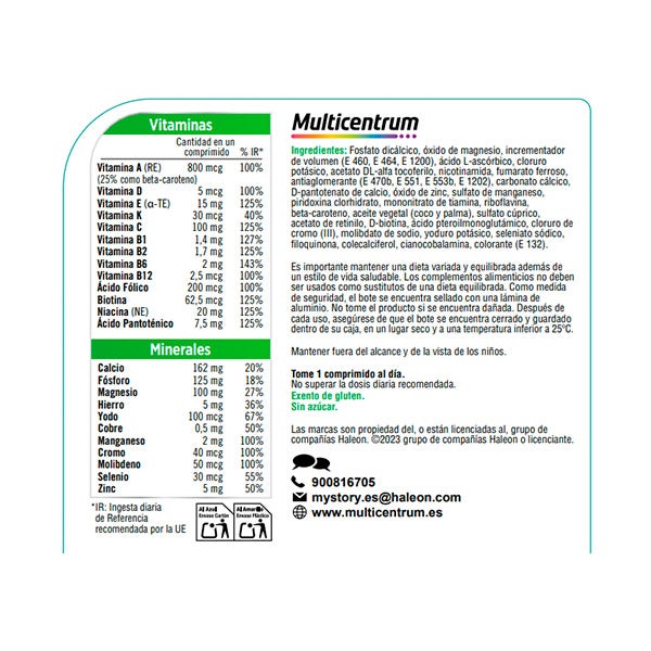 Se puede consumir Multicentrum durante largos periodos como apoyo nutricional a su dieta.
