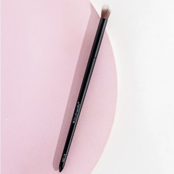 Te presentamos la brocha Brushworks No. 14 Fluffy Blending Eye Brush, la aliada perfecta para conseguir un maquillaje de ojos pulido y profesional. Creada con especial atención a la precisión, esta herramienta se vuelve esencial si deseas aplicar tus sombras con suavidad y sin complicaciones. Su forma abovedada permite difuminar los tonos con exactitud y lograr distintos estilos, desde un ahumado intenso hasta un acabado natural para el día. Gracias a sus cerdas sintéticas de taklon ultrafinas, el producto se distribuye de forma homogénea y cómoda, respetando la delicada piel del contorno de ojos.