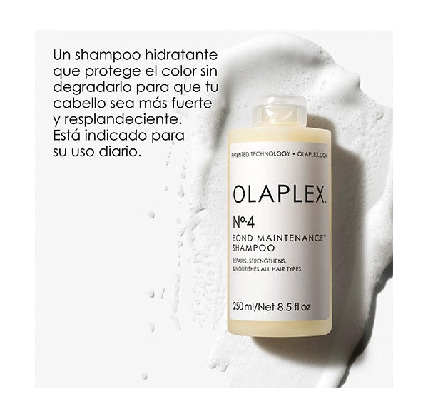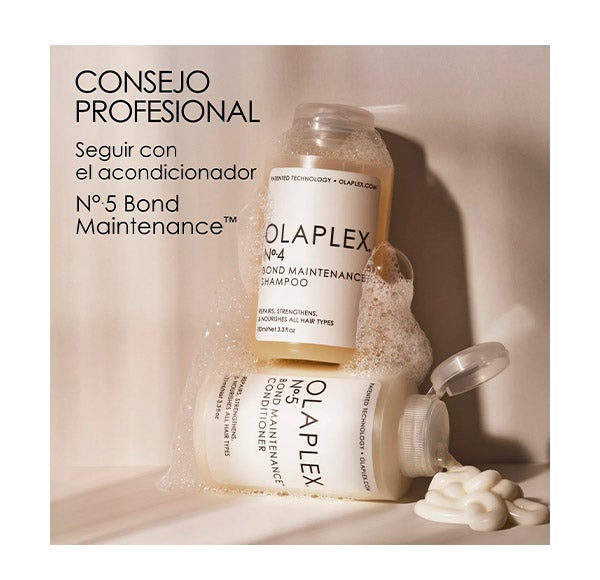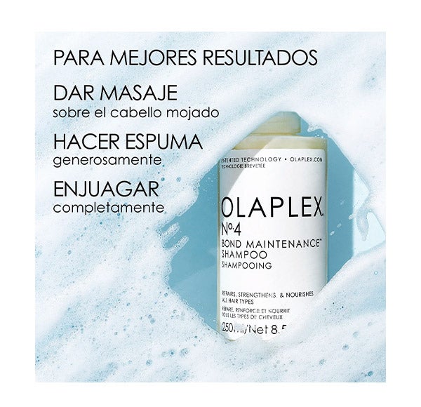 Bond Maintenance Shampoo 4 incorpora la exclusiva tecnología patentada de reparación de enlaces disulfuro, base del Tratamiento Olaplex.