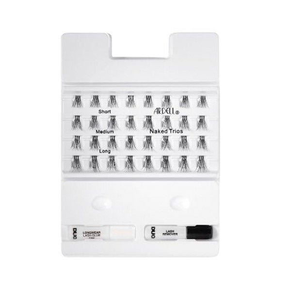 Las Naked Trios son la nueva propuesta de Naked para ampliar la colección de pestañas individuales. Gracias a sus fibras cónicas, su curvatura delicada y el acabado sutil que proporcionan, se logra un aspecto naturalmente definido. Se colocan en pocos minutos y su efecto puede durar hasta 3 días. Contiene: 32 tríos, adhesivo y removedor.