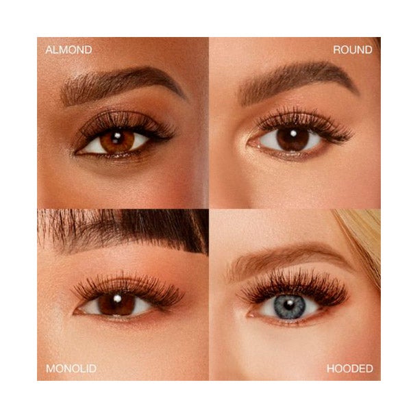 3. Humedece la base de las pestañas postizas en el adhesivo y colócalas sobre tus pestañas naturales, comenzando desde el extremo exterior del ojo. Puedes aplicarlas tanto por encima como por debajo de tus pestañas naturales.