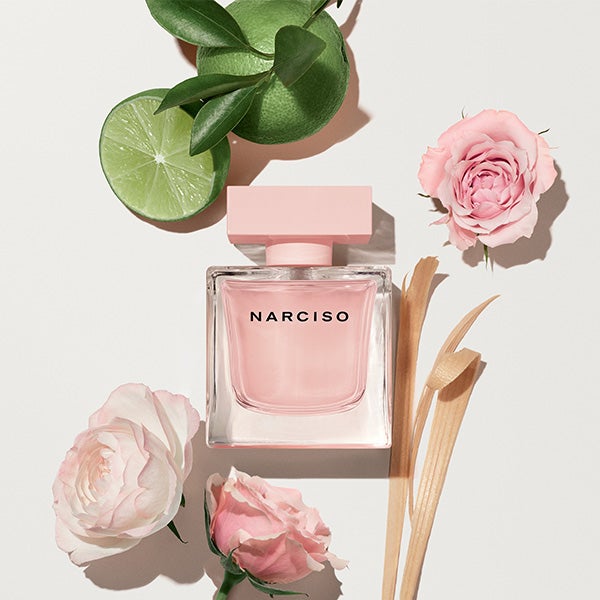 NARCISO eau de parfum cristal para mujer establece un nuevo referente de naturalidad, con más del 85% de sus ingredientes de origen natural. La bergamota italiana y la nota de rosa obtenida por un innovador proceso de destilación permiten recuperar los matices del agua floral, ofreciendo una interpretación olfativa que recuerda a la rosa recién cortada.