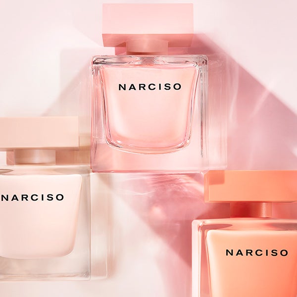El icónico frasco de NARCISO adopta su versión más esencial: cristal transparente con un delicado matiz rosado que deja entrever la fragancia luminosa en su interior. Se corona con un tapón rosa mate en contraste, reflejo de la misma energía radiante de la mujer NARCISO.