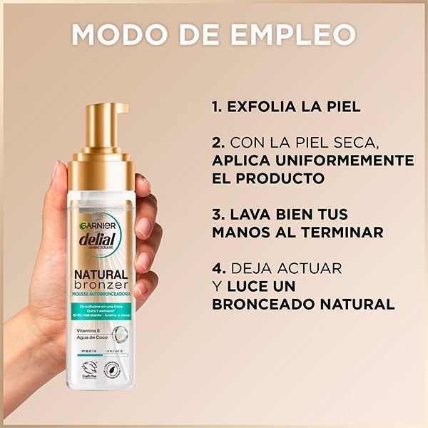 Garnier Natural Bronzer incorpora un autobronceador 100% de origen vegetal que permite obtener de forma inmediata un tono dorado natural y radiante.