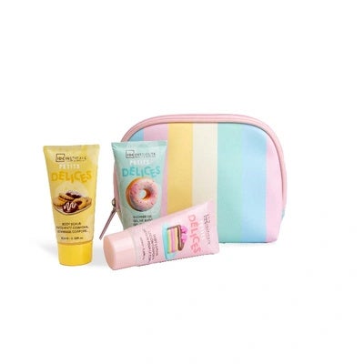 Explora el encanto del set de ducha de la colección Gourmands Favorites, presentado dentro de un práctico neceser. Contiene gel de ducha, loción corporal y exfoliante corporal, cada uno con fragancias irresistibles que despiertan los sentidos. Este conjunto imprescindible limpia, hidrata y suaviza la piel, transformando la rutina de higiene diaria en un momento de bienestar personal.