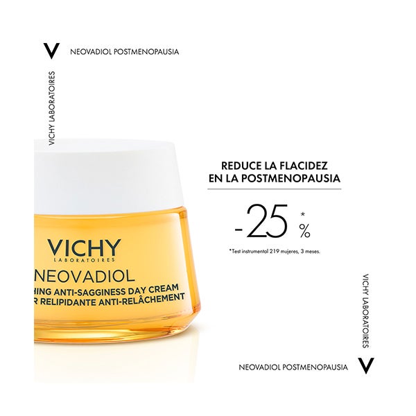 Los Laboratorios Vichy llevan más de dos décadas estudiando cómo los cambios hormonales afectan la piel femenina. A partir del descubrimiento del papel del cortisol, se ha desarrollado la sexta generación de productos Neovadiol, un protocolo específico de cuidado para día y noche destinado a cubrir las necesidades de la piel durante la peri y postmenopausia. Contiene activos seleccionados por su eficacia en ayudar a reducir los signos visibles del envejecimiento.