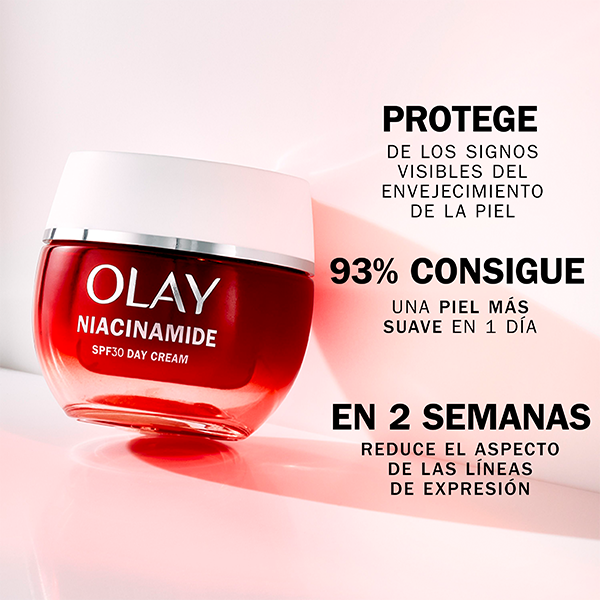 Olay Regenerist Niacinamide SPF30: La Crema Hidratante que Combate los 10 Signos de la Edad ¡Revitaliza tu piel con Olay Regenerist Niacinamide SPF30 , la crema hidratante que desafía los 10 signos visibles del envejecimiento! Esta avanzada fórmula reafirmante con protección solar SPF 30 no solo hidrata profundamente, sino que también ofrece resultados visibles, tanto inmediatos como a largo plazo. Olay Regenerist Niacinamide SPF30: Potente combinación de Niacinamida pura al 99% : Su acción penetra hasta 10 capas de profundidad en la superficie de la piel, ayudando a mejorar su textura y tono. Vitamina E antioxidante : Un ingrediente clave que neutraliza los daños causados por los radicales libres, protegiendo la piel del envejecimiento prematuro y manteniéndola más joven y saludable. Hidratación de 24 horas : Mantén tu piel suave y nutrida durante todo el día gracias a su fórmula de larga duración. Resultados rápidos y visibles : El 93% de las mujeres reportaron una piel más suave en solo 24 horas, y después de 14 días de uso continuo, notarás una mayor firmeza y una reducción significativa en las líneas de expresión. Protección solar avanzada : Gracias a su tecnología Olay SolaSheer SPF30 , proporciona protección de amplio espectro contra los dañinos rayos UVA y UVB, sin dejar una sensación pesada o grasa. Aprobación dermatológica : Respaldada por la Skin Health Alliance , este producto es eficaz en la lucha contra los signos del envejecimiento, ofreciendo resultados seguros y comprobados. Innovador Diseño Sostenible con Recambio No solo cuidas tu piel, también cuidas el medio ambiente. El frasco de cristal de Olay Regenerist Niacinamide SPF30 es elegante y sostenible, y viene con cápsulas rellenables que se insertan y extraen fácilmente, haciendo que tu experiencia de cuidado de la piel sea aún más agradable y respetuosa con el planeta. Con esta crema hidratante ligera y no grasa, disfrutarás de una piel visiblemente más joven, suave y protegida. ¡Añade Olay Regenerist Niacinamide SPF30 a tu rutina diaria y descubre el poder transformador de una piel cuidada y renovada!