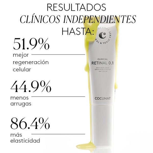 Impulsa tu rutina nocturna con el tratamiento renovador celular de Retinal al 0,1%. Su innovador sistema SMART DELIVERY TECNOLOGY optimiza la acción del activo, ofreciendo resultados 11 veces más veloces y 3 veces más eficaces que el Retinol tradicional. Enriquecido con Niacinamida y Ácido Hialurónico, proporciona hidratación, reduce líneas y manchas, favorece la producción de colágeno y deja la piel más luminosa y firme.