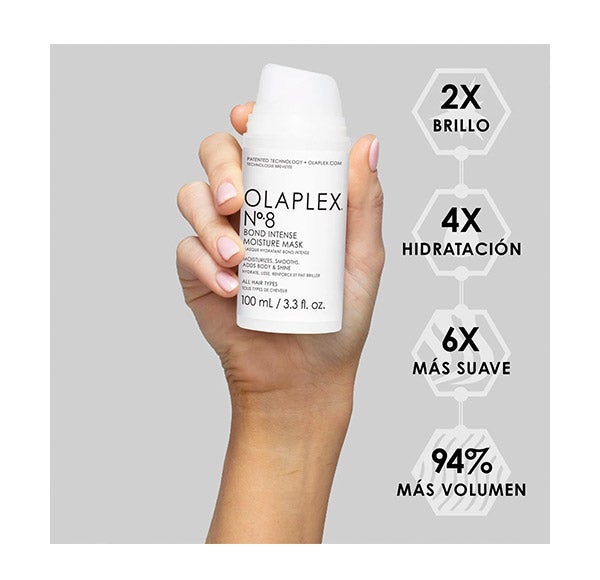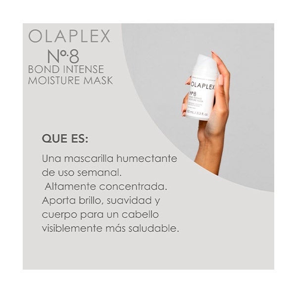 Olaplex 8 Bond Intense Moisture Mask es la más reciente incorporación de Olaplex y uno de los productos más deseados por los seguidores de esta firma pionera. Se trata de una mascarilla de tratamiento hidratante intensivo y reparador. Según la marca, esta innovadora fórmula ofrece al cabello: