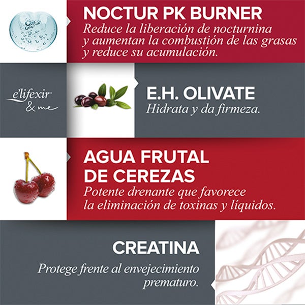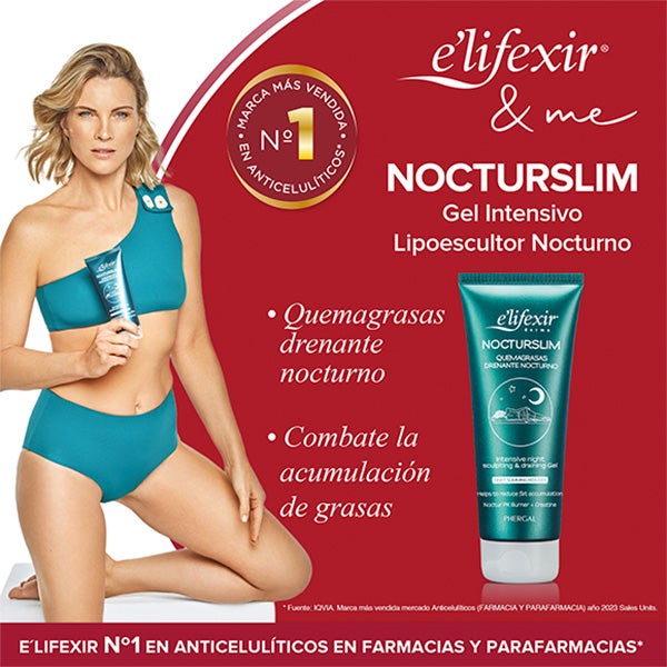 Elifexir Nocturslim gel es un tratamiento nocturno intensivo de acción quemagrasa que actúa limitando la liberación de nocturnina, favoreciendo así la quema de grasas y evitando que se acumulen en el organismo.