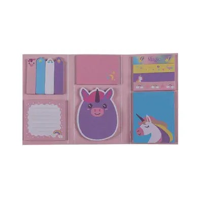 Juego de notas adhesivas con diseño de Unicornio, que incluye seis estilos o medidas distintas en cada set.