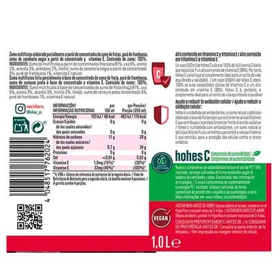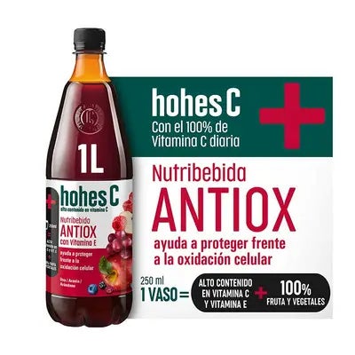 La bebida HOHES C - NUTRIBEBIDA ANTIOX PET 1L es una opción natural y deliciosa, rica en vitamina C y vitamina E, que ayuda a proteger contra la oxidación celular. Hohes C, una marca con más de 60 años de experiencia en bebidas nutricionales, es líder en Alemania.