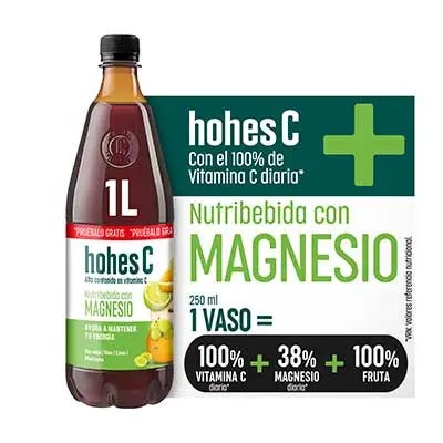 Hohes C Nutribebida con Magnesio: Zumo de manzana, naranja, uva, lima, acerola, limón