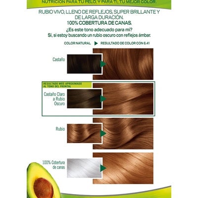 Con Garnier Nutrisse, un cabello nutrido significa un mejor color. Nutrisse cuenta con una fórmula nutritiva intensa con 3 aceites (aguacate, oliva y grosella negra). Tu cabello queda sedoso y brillante al tiempo que el color se ve intenso, profundo y es duradero. El resultado del color proporciona una cobertura de las canas total: incluso las canas más rebeldes se tiñen. Nutrisse Crème asegura una aplicación agradable, su color intenso que no gotea se aplica fácilmente por el cabello y tiene una fragancia fresca y afrutada. Hasta 8 semanas de nutrición y color intenso de larga duración. Contenido del pack: 1 frasco aplicador de leche reveladora, 60ml + 1 Tubo de crema colorante nutritiva, 40ml + 1 Frasco de mascarilla nutritiva del color, 60ml + 1 Par de guantes.