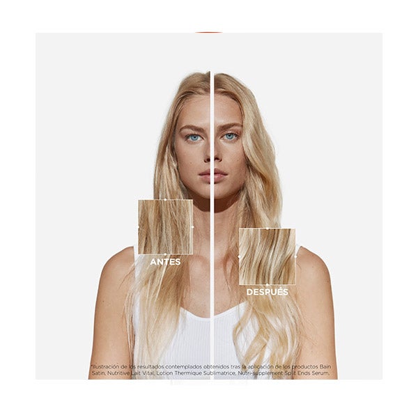 Su textura lechosa hidrata desde el interior, proporcionando reparación, elasticidad y suavidad, además de ofrecer protección térmica hasta 230ºC.