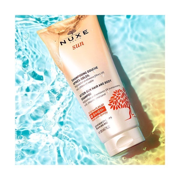 El champú para cuerpo y cabello tras la exposición solar ofrece una limpieza delicada, dejando la piel sedosa y el cabello con ligereza y brillo natural.