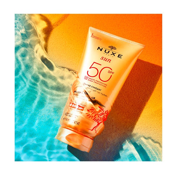 Esta leche fundente de alta protección SPF 50 resguarda la piel de la radiación solar, aporta hidratación y contribuye a prevenir los signos del envejecimiento cutáneo y la aparición de manchas.