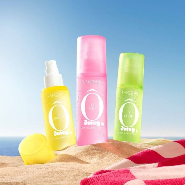 Lancôme Ô Oui Juicy Hair & Body Mist es una bruma aromática radiante creada para revitalizar sutilmente la piel y el cabello con una fragancia floral afrutada que evoca la energía del verano. Mezcla lichi jugoso y notas de frambuesa vibrante para dar vida a una frescura chispeante y deliciosa. En su corazón, la rosa concentrada aporta una elegancia floral delicada, enriquecida con acordes de té etéreos que añaden luz y refinamiento. La esencia reposa sobre una base envolvente de vainilla cremosa y almizcle aterciopelado, dejando un rastro irresistible y suave. Gracias a su textura ligera, puede reaplicarse a lo largo del día, resultando ideal para renovar la fragancia y disfrutar de una sensación luminosa y alegre.
