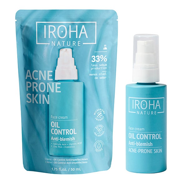 La Crema Oil Control Antiimperfecciones de Iroha Nature combate la sequedad, la irritación y la descamación, ofreciendo una hidratación profunda y prolongada a las pieles con tendencia acneica sin obstruir los poros. Su fórmula concentrada y eficaz, enriquecida con activos no comedogénicos, contribuye a equilibrar la producción de sebo mientras calma y fortalece la barrera protectora de la piel. Evaluada dermatológicamente y con eficacia demostrada, esta crema de textura ligera combina Niacinamida 5%, ácido salicílico, zinc PCA y probióticos para disminuir el exceso de grasa y brillo, promoviendo una piel más saludable e hidratada.