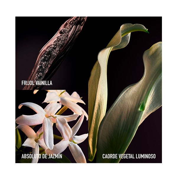 Un encantador perfume floral ambarado con matices verdes que refleja la parte más enigmática de tu esencia divina. Creado con materias primas de alta calidad, este aroma de mujer con toques de vainilla combina la pureza del jazmín blanco con el toque picante de la pimienta rosa y un sutil acorde vegetal.