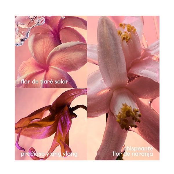 La chispa de la mandarina y la naranja, sobre un corazón de ylang ylang y flores blancas, desprende una energía vibrante y envolvente.