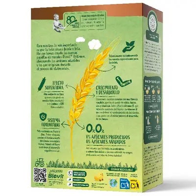 Blevit® Optimum 8 Cereales es una opción nutritiva y deliciosa diseñada especialmente para el bienestar de tu pequeño. Con un 92% de cereales, esta fórmula única combina trigo integral, maíz, arroz, avena integral, centeno, trigo sarraceno, espelta y cebada, ofreciendo una nutrición completa.