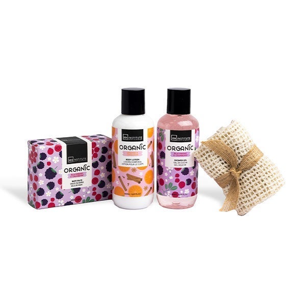 El set Organic brinda una auténtica sensación de spa en tu hogar. Contiene gel de ducha, loción corporal, sales de baño y una toalla de sisal. Déjate envolver por el delicioso perfume de naranja, canela, mora y arándano mientras cuidas y renuevas tu piel. Un ritual de bienestar que aporta un toque de lujo a tu día a día.
