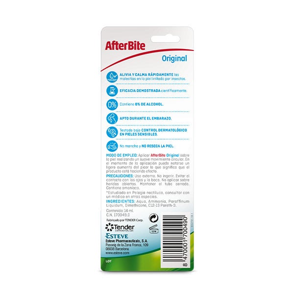 Si al aplicarlo notas un leve incremento del picor, es señal de que After Bite está actuando para calmar y reducir la irritación producida por las picaduras de mosquitos.