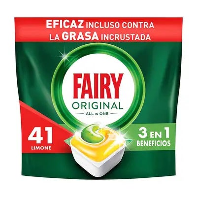 Fairy Original Todo En Uno Cápsulas De Lavavajillas, Limón, 41 Cápsulas, Efectivas Incluso En La Grasa Reseca