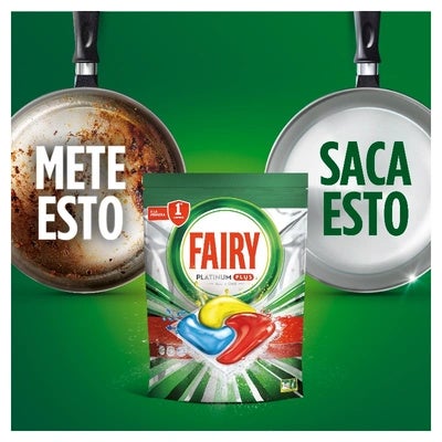 Optimiza tu rutina y devuelve el brillo original a tus platos con Fairy Platinum Plus Limón Cápsulas de Lavavajillas Todo en Uno, la mejor opción para una limpieza impecable.