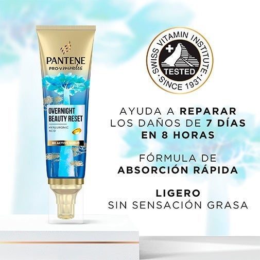¿Tu cabello pide un cambio urgente? Hidratación y Brillo Beauty Reset de noche es el primer sérum nocturno de Pantene diseñado para cabellos resecos o con daños visibles. ¡Repara los signos de deterioro de una semana mientras duermes! Este tratamiento nocturno, enriquecido con ácido hialurónico, regenera e hidrata en profundidad cada hebra.
