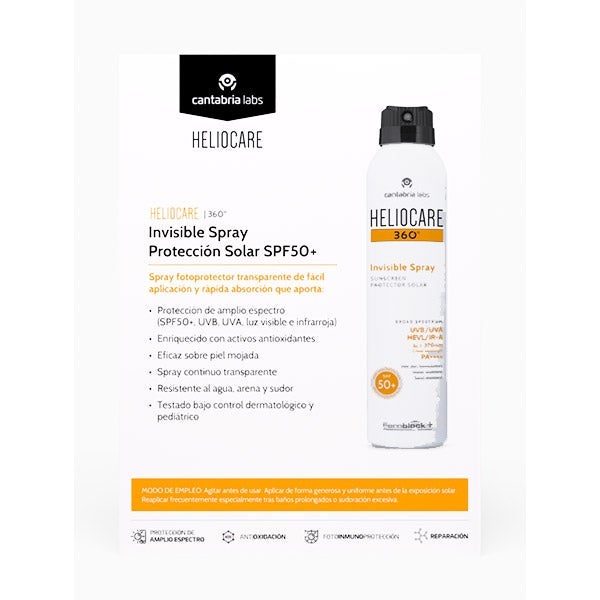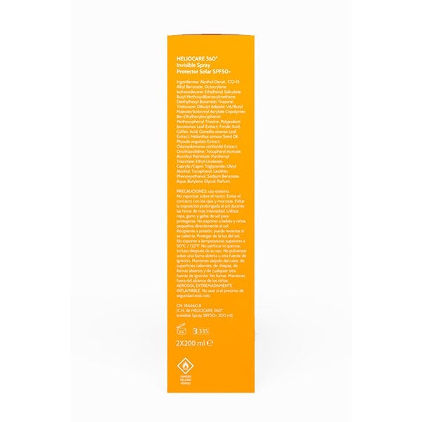 Este pack en formato ahorro incluye dos unidades de Heliocare 360°º Invisible Spray: protección solar transparente de amplio espectro frente a UVB, UVA, luz visible e infrarrojos.