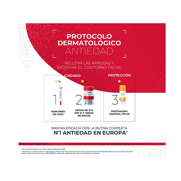 Eucerin Hyaluron-Filler + Volume-Lift Día FPS 15 es un tratamiento facial antiedad creado para contrarrestar la pérdida de firmeza y volumen que aparece con el envejecimiento cutáneo.
