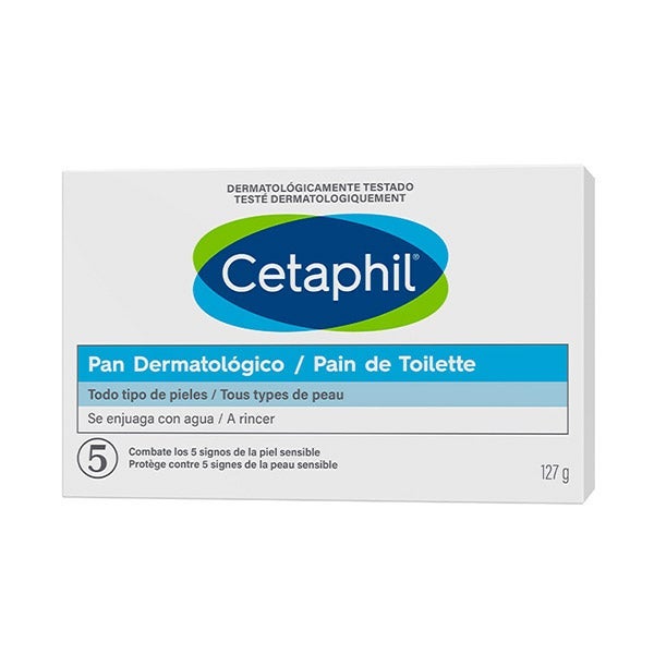 Cetaphil® pan dermatológico para piel seca y sensible, elaborado con componentes hidratantes y un pH equilibrado que contribuyen a conservar la defensa natural de la piel. Limpia con delicadeza incluso las pieles más sensibles y resecas.