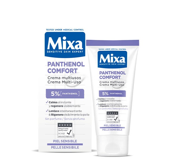Crema versátil con 5% de Pantenol, diseñada específicamente para pieles sensibles.
