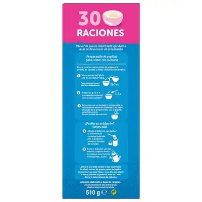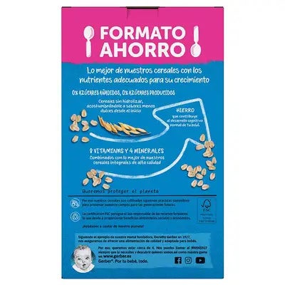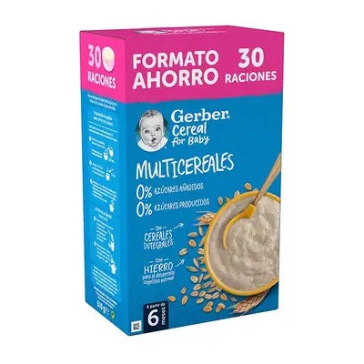 Asegura una alimentación saludable y balanceada para tu bebé con GERBER Papilla Multicereales 0% azúcares añadidos ni producidos, un producto pensado para su desarrollo y bienestar.