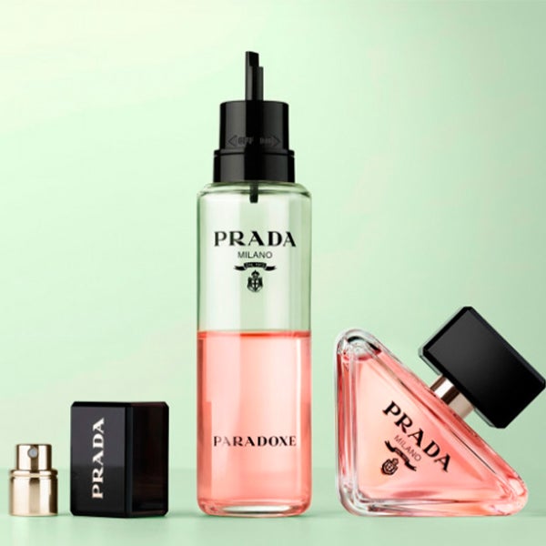 La innovadora esencia recargable de Prada Paradoxe es una fragancia floral ambarada que combina de manera sorprendente contrastes de ingredientes emblemáticos, revelando nuevas experiencias olfativas.