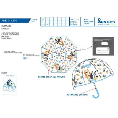 Paraguas transparente bluey azul diseñado para cubrir las necesidades del día a día.