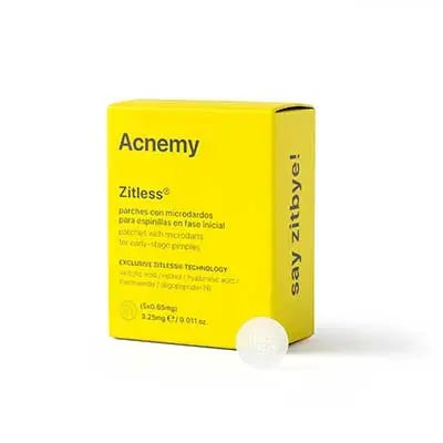 Zitless® es un parche para granos que contiene 24 micro dardos compuestos por una mezcla única de ingredientes como retinol, ácido salicílico, ácido hialurónico, niacinamida y olipeptido-76, los mejores ingredientes para combatir el acné. Una vez pegado, los microdardos penetran en las primeras capas de la piel y se disuelven liberando los activos y tratando el problema de raíz. Déjalo actuar un mínimo de dos horas y ¡vôila! tu grano habrá reducido su tamaño incluso desaparecido.(pack 5 ud)