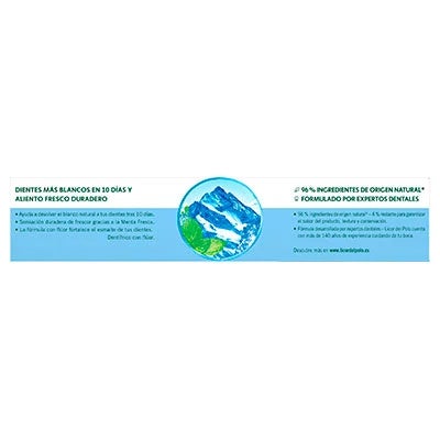 Licor del polo Blanco Polar es un dentífrico con flúor que te ayuda a devolver el blanco natural a tus dientes sin renunciar a todo el frescor; el uso continuado de licor del polo blanco polar devuelve el blanco natural a tus dientes gracias a la eficacia de su fórmula con proactín, un agente antisarro; resultados visibles tras 10 días; su sabor a menta proporciona un agradable frescor; su suave fórmula no daña el esmalte, pudiéndose usar hasta tres veces al día. Contiene un 96% de ingredientes de origen natural.
