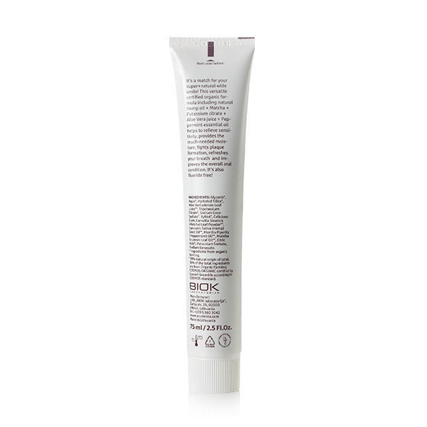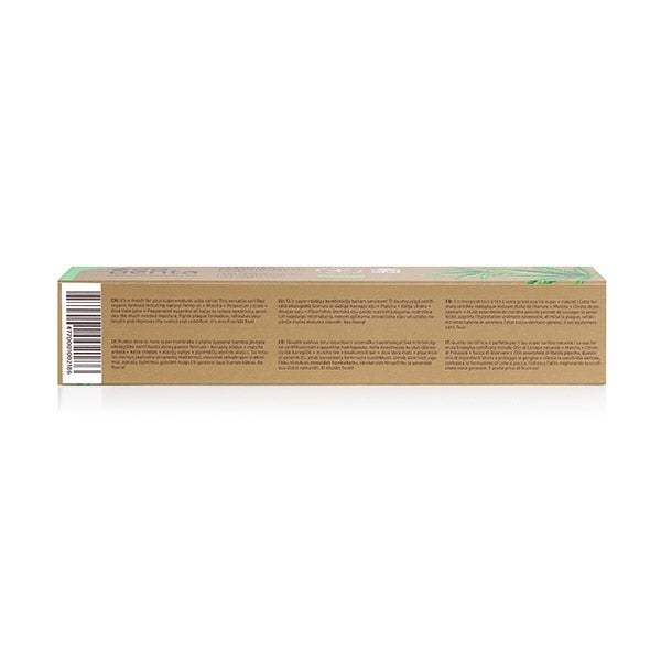 Su fórmula con certificación ecológica combina aceite de cáñamo natural, Matcha, citrato de potasio, jugo de aloe vera y aceite esencial de menta piperita. Este conjunto contribuye a reducir la sensibilidad, ofreciendo hidratación adecuada, ayudando a prevenir la placa y dejando una sensación de frescor que favorece una boca saludable.