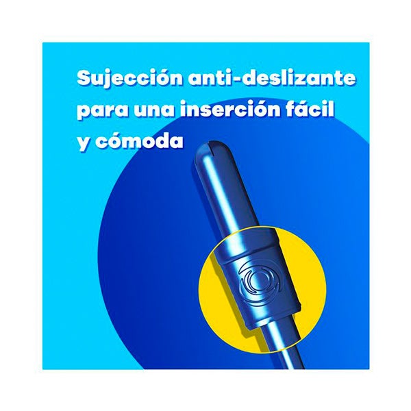 Estos tampones incorporan un aplicador de plástico con superficie ultrasuave y agarre seguro que facilita una colocación sencilla y confortable.