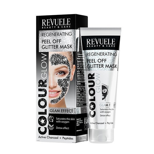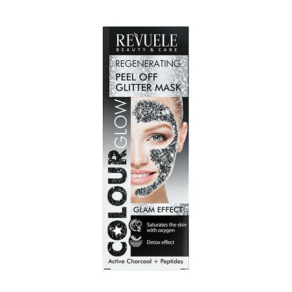 REVUELE COLOR GLOW BLACK MASCARILLA REGENERADORA PEEL OFF GLITTER.